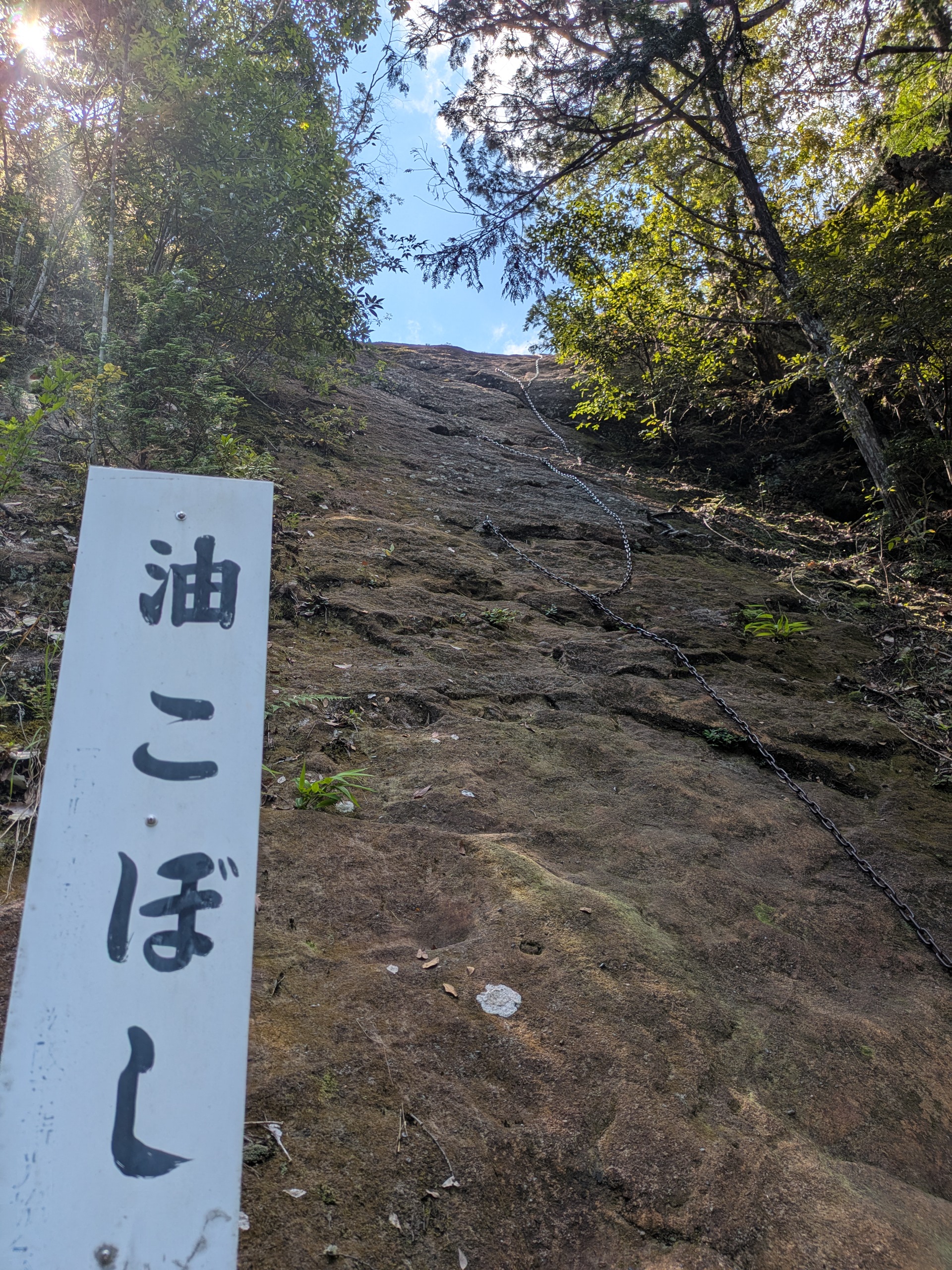 いきなり「油こぼし」という鎖場です。わくわくですね。