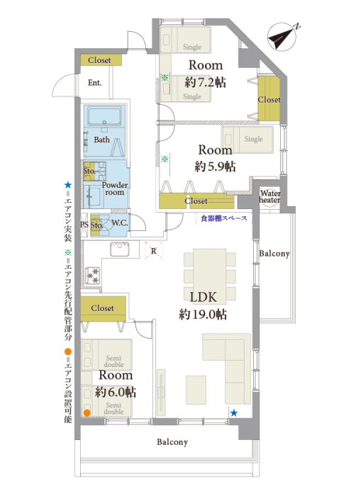 専有面積 | 92.07u | 間取り | 3LDK (LDK19/洋室7.2/洋室6/洋室5.9) | ||