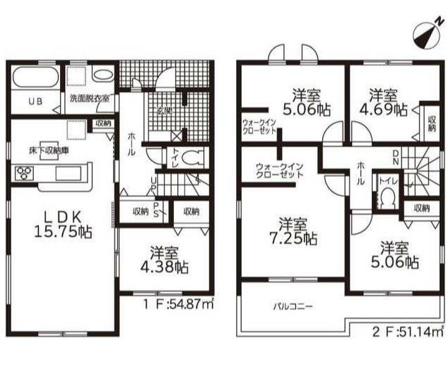 | 築年月 | 2025年11月築 | 間取り | 5LDK (LDK15.75/洋室7.25/洋室5.06/洋室5.06/洋室4.69/洋室4.38) | ||