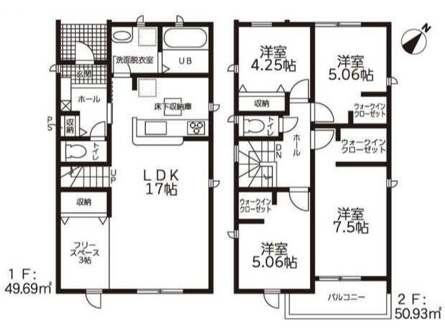 築年月 2025年11月築 間取り 4SLDK (LDK17/洋室7.5/洋室5.06/洋室5.06/洋室4.25/その他3)