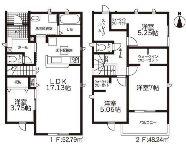 | 築年月 | 2025年12月築 | 間取り | 4SLDK (LDK17.13/洋室7/洋室5.25/洋室5.06/洋室3.75) | ||
