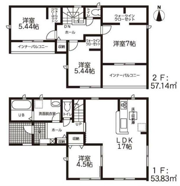 | 築年月 | 2025年10月築 | 間取り | 4LDK (LDK17/洋室7/洋室5.44/洋室5.44/洋室4.5) | ||