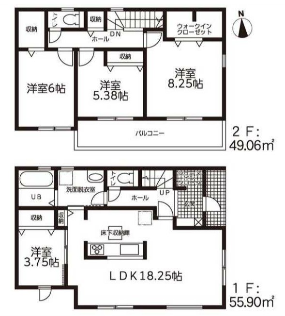 築年月 2025年10月築 間取り 4LDK (LDK18.25/洋室8.25/洋室6/洋室5.38/洋室3.75)