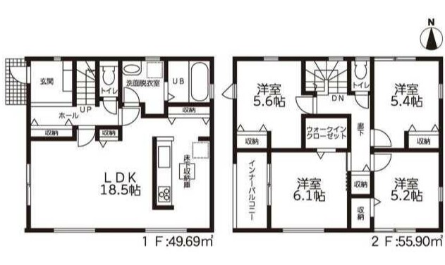 築年月 2026年2月築 間取り 4LDK (LDK18.5/洋室6.1/洋室5.6/洋室5.4/洋室5.2)
