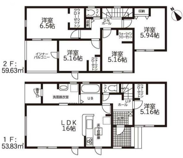 | 築年月 | 2025年11月築 | 間取り | 5LDK (LDK16/洋室6.5/洋室5.94/洋室5.16/洋室5.16/洋室5.16) | ||