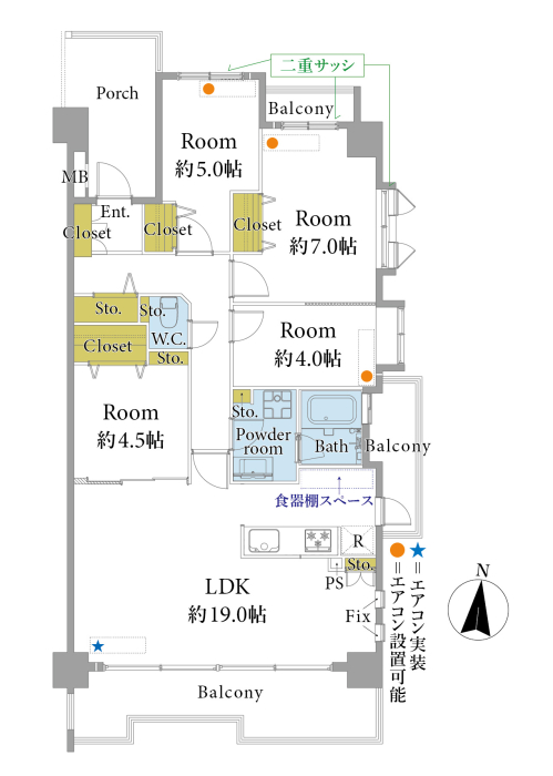 専有面積 | 84.88u | 間取り | 4LDK (LDK19/洋室7/洋室5/洋室4.5/洋室4) | ||
