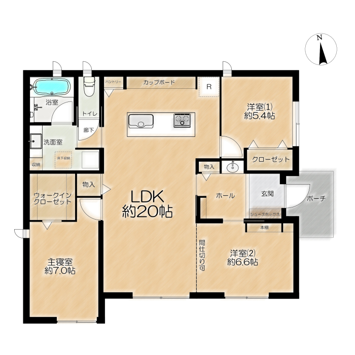 築年月 2022年11月築 間取り 3LDK (LDK20/洋室7/洋室6.6/洋室5.4)