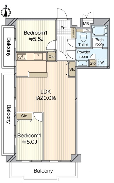 専有面積 | 69.8u | 間取り | 2LDK (LDK20/洋室5.5/洋室5) | ||