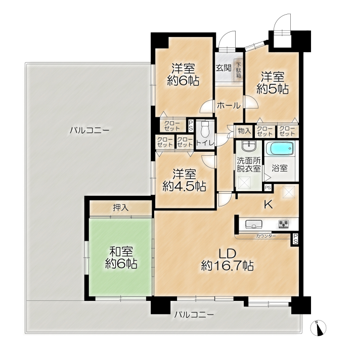 専有面積 | 85.2u | 間取り | 4LDK (LD16.7/洋室6/洋室5/洋室4.5/和室6) | ||