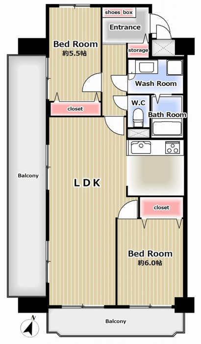 専有面積 66.36u 間取り 2LDK (-)