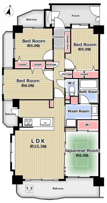 専有面積 | 84.02u | 間取り | 4LDK (LDK15.3/洋室6/洋室5/洋室5/和室6) | ||