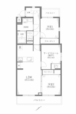 専有面積 | 66.87u | 間取り | 2SLDK (LDK14.3/洋室4.6/洋室4.5/S5.1) | ||