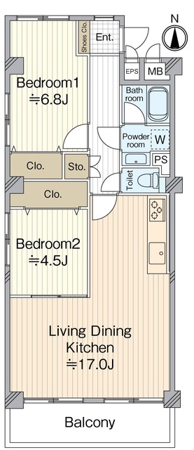 専有面積 | 65.12u | 間取り | 2LDK (LDK17/洋室6.8/洋室4.5) | ||