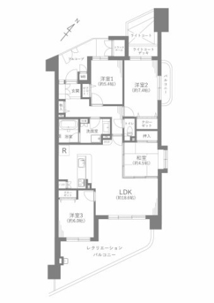 専有面積 | 94.02u | 間取り | 2SLDK (LDK18.6/洋室7.4/洋室6/洋室5.4/和室4.5) | ||