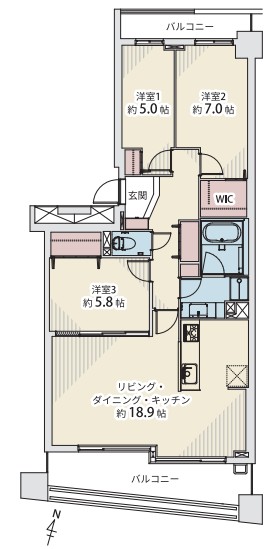 専有面積 | 83.75u | 間取り | 3LDK (LDK18.9/洋室7/洋室5.8/洋室5) | ||