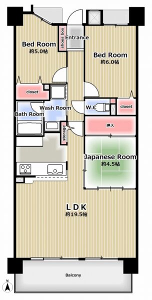 専有面積 | 76.07u | 間取り | 3LDK (LDK19.5/洋室6.5/洋室5/和室4.5) | ||