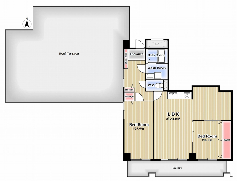 専有面積 79.71u 間取り 2LDK (LDK20.6/洋室9/洋室6)